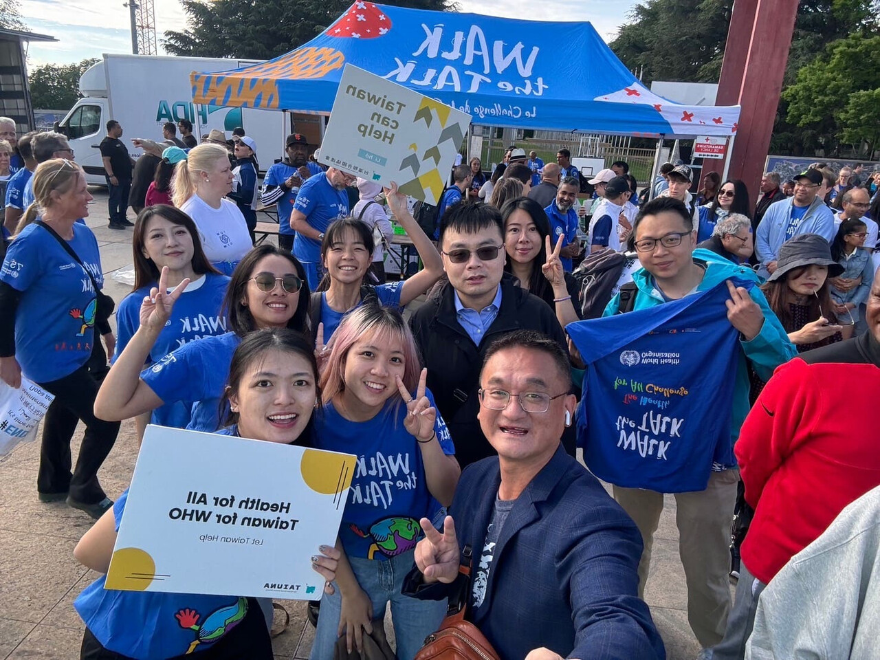 5月26日,我們參與了由世界衛生組織(WHO)舉辦的「Walk the Talk」健走活動。活動中,我們與來自世界各地的參與者交流、發送印有「WHO cares about Taiwan?」的紋身貼紙,向他們介紹台灣的公共衛生成就。