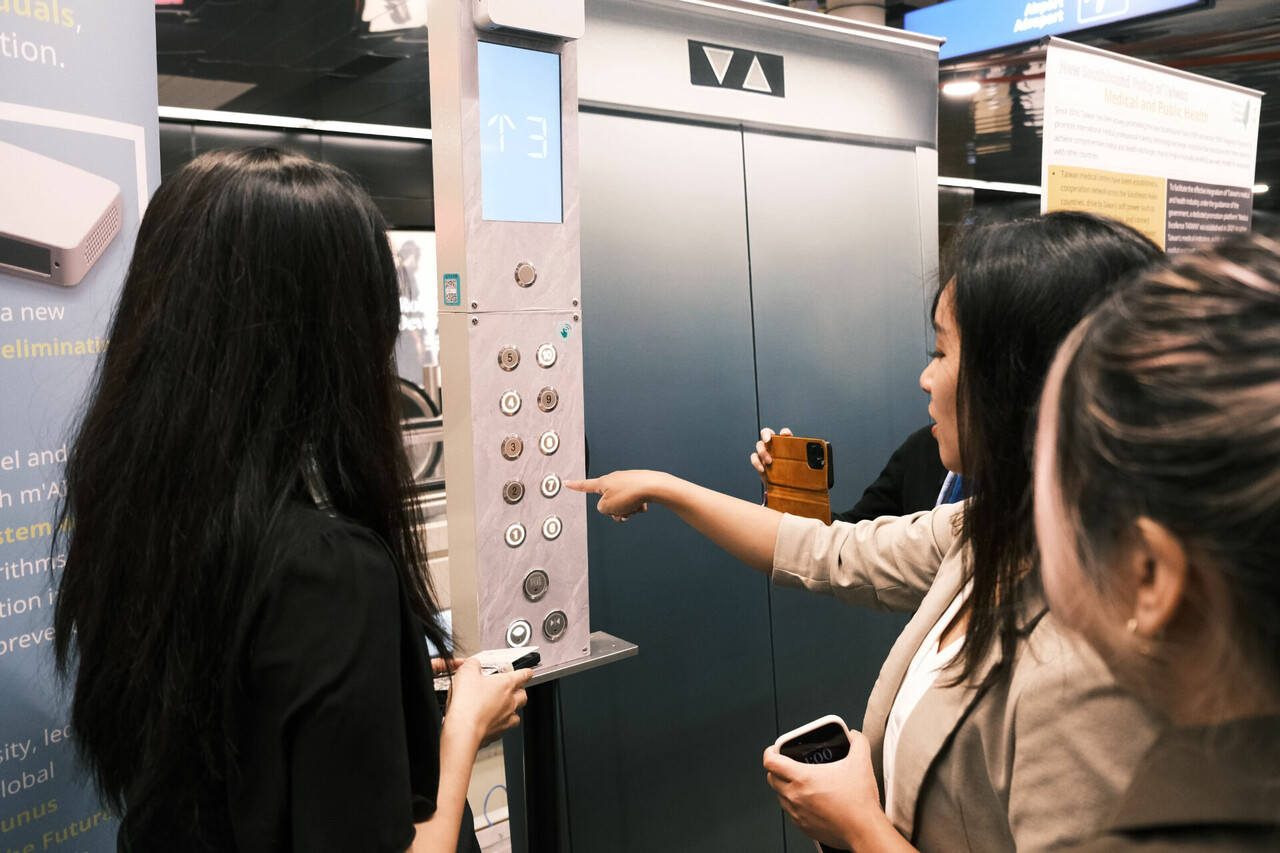 AI非接觸感應系統: 由清大王鴻文教授研發,透過無接觸操作電梯,解決行動與心理不便者日常出行問題。